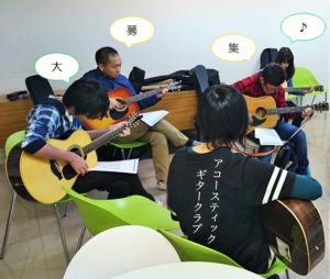 初心者、経験者励ましあいながら、楽しくギターを練習します。